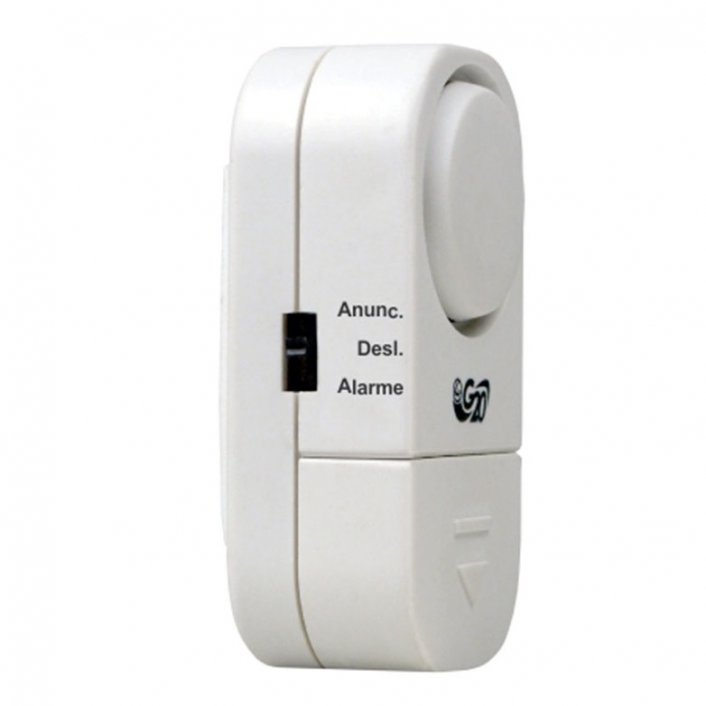 Descrição • 2 em 1 – Duas funções em um único equipamento • Sirene de 90 dB • Funções Alarme e Anunciador • Acionamento por contato magnético • Fixação: Fita adesiva dupla face • Baterias inclusas: 3 LR44 1,5 V