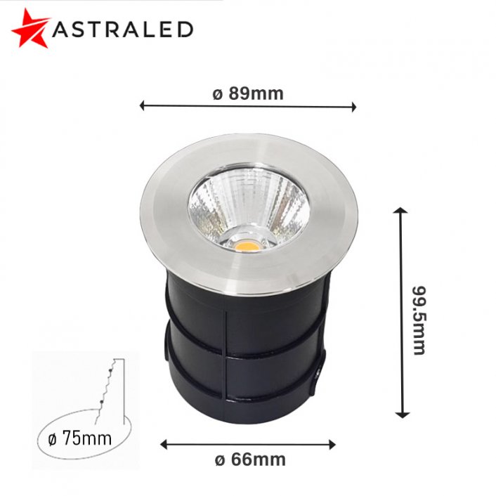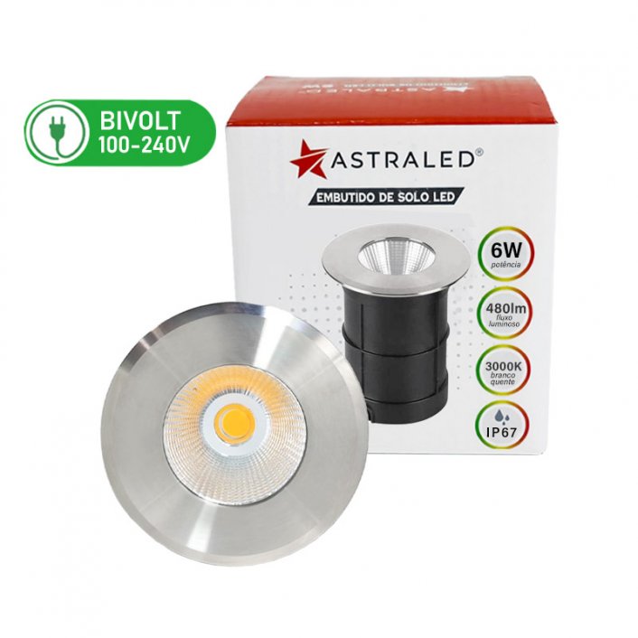 O balizador de solo Astraled 6W é indicado para projetos de iluminação externa que requerem eficiência e durabilidade. Com fluxo luminoso de 480 lúmens e temperatura de cor de 3000K, oferece luz quente que garante conforto visual e valorização de jardins, caminhos, fachadas e áreas de circulação. O índice de proteção IP67 assegura vedação total contra poeira e resistência à imersão temporária em água, garantindo desempenho estável em condições externas.