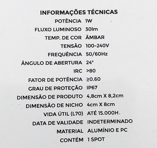 - Fluxo Luminoso: 30lm