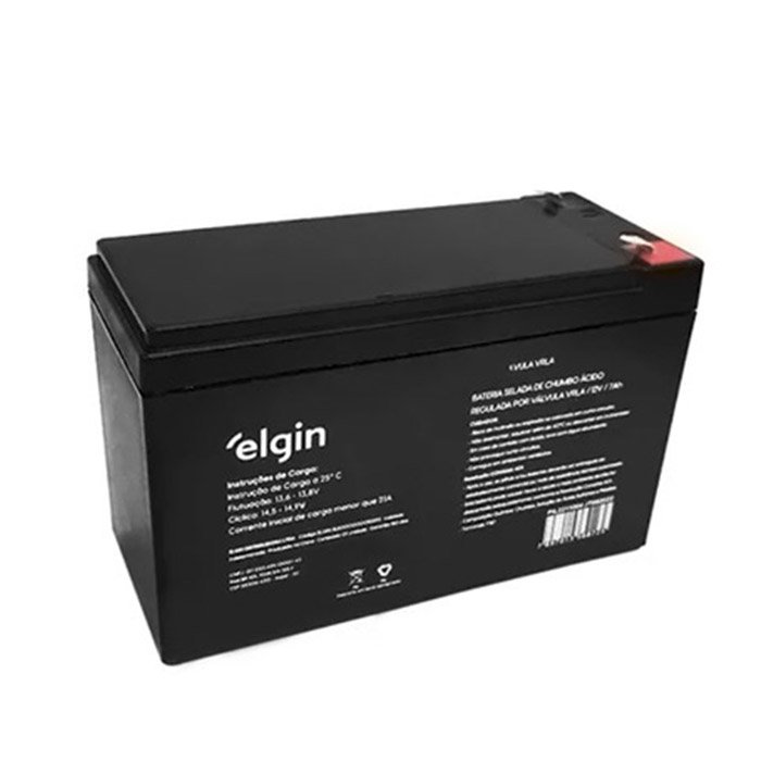 Instrução de carga a 25°C Flutuação: 13,6 - 13,8 V Cíclico: 14,5 - 14,9 V Corrente inicial de carga menor que 2.1A Bateria selada de chumbo ácido Regulada por válvula VRLA / 12V / 7Ah Dimensão: 15,2 x 9,5 x 6,6 cm ( L x A x P)