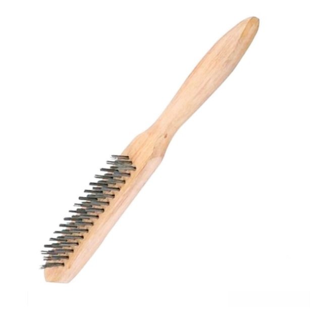 Cerdas de aço fixadas a um cabo de madeira. Oferece controle direto ao usuário para trabalhos detalhados e específicos. Composição: Madeira Medidas: 29 cm de comprimento por 1,7cm de altura Quant. de fileiras: 3
