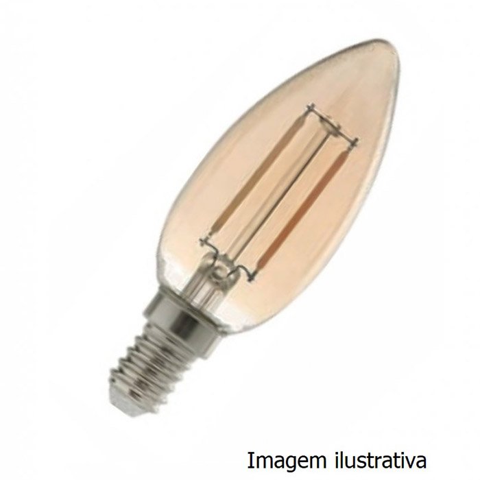 Potência: 4W Voltagem: 100-240V Temp. de Cor: 2.200K Fluxo Luminoso: 400lm Fator de Potência: ≥0.5 IRC: >80 Grau de Proteção: IP20 Vida Útil: Até 15.000Hrs Dimensão: 35 x 90mm Material: Vidro e Alumínio Cor do Vidro: Âmbar Base: E14