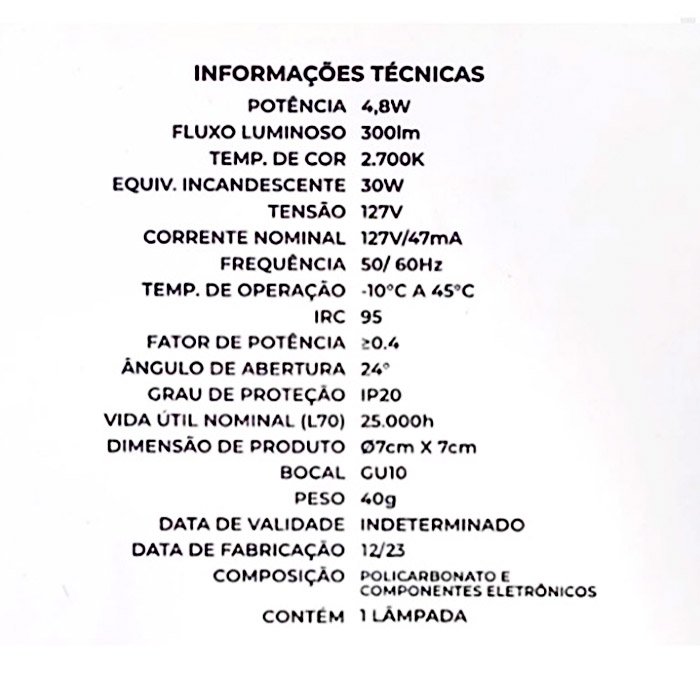Temp. de Cor: 2.700K