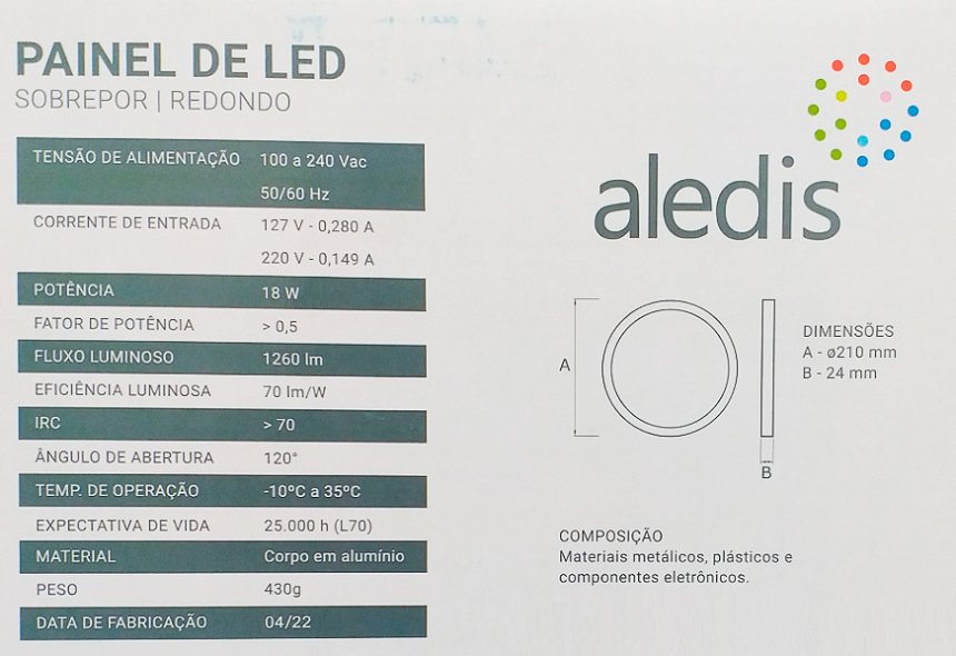 Composição: Materiais metálicos, plásticos e componentes eletrônicos
