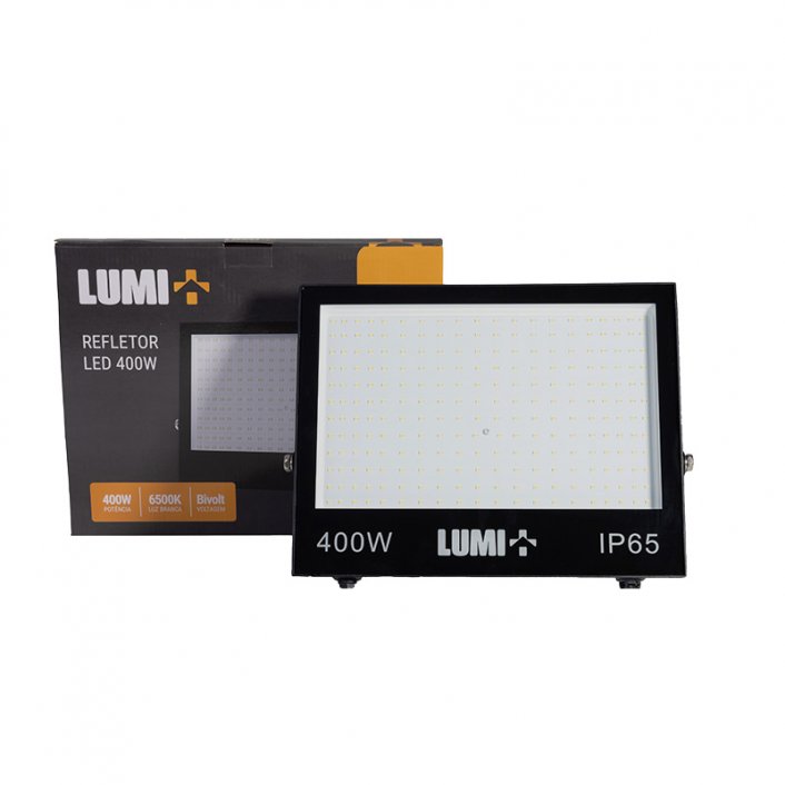 Potência: 400W Tensão: 100-240V Temp. de Cor: 6.500K Fluxo Luminoso: 32000lm Grau de Proteção: IP65 Vída Útil (L70): 10.000hrs Material: Alumínio Dimensões do produto (AxLxC): 42cm x 31cm x 3cm Com válvula de alívio