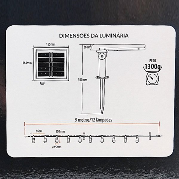 Com 12 lâmpadas de 6W e tecnologia RGB, este varal oferece uma ampla gama de cores para personalizar a iluminação de acordo com o seu estilo e ocasião. O painel solar integrado garante praticidade e economia, eliminando a necessidade de tomadas e fios.