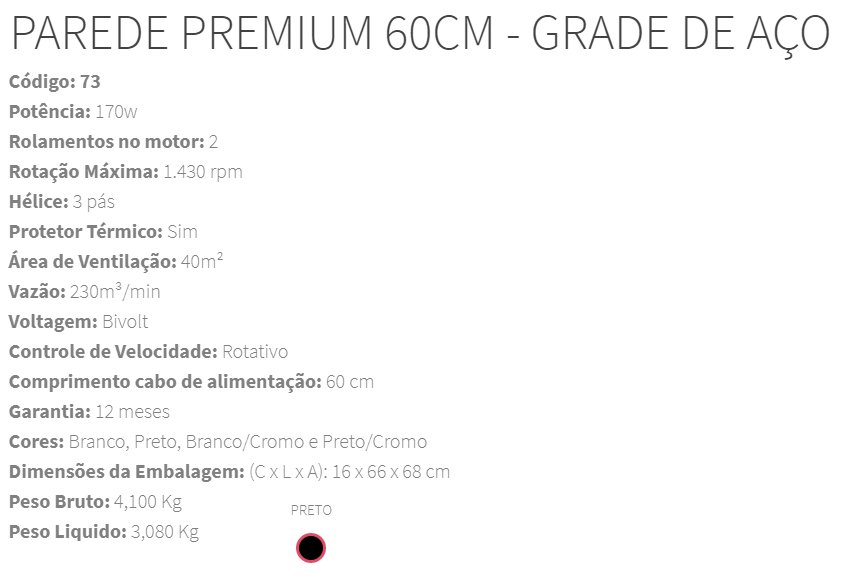 Comprimento cabo de alimentação: 60 cm