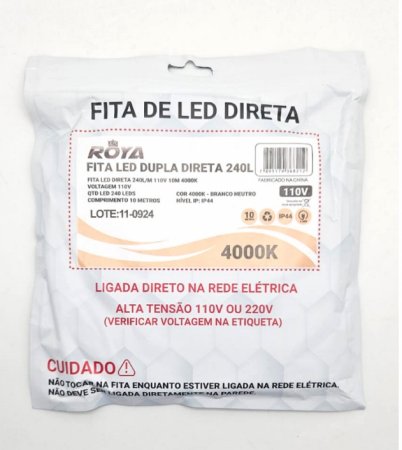 Fita perfil dupla 10m 127v ip44 14w 4000k 240led/m 11mm-Roya