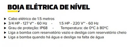 Chave bóia inferior/superior 1,5m 15a 127/220v-Fertak