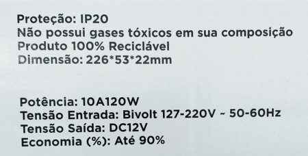 Fonte p/fita chaveada slim 120w 10.0a 12v biv-Rgled