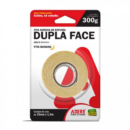 Fita dupla face 19mm x 1,5m espuma polietileno branca-Adere 285s