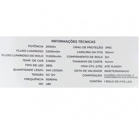 Fita LED 5m 12v 20w 2700k 240led/m ip65 Externo -Nordecor