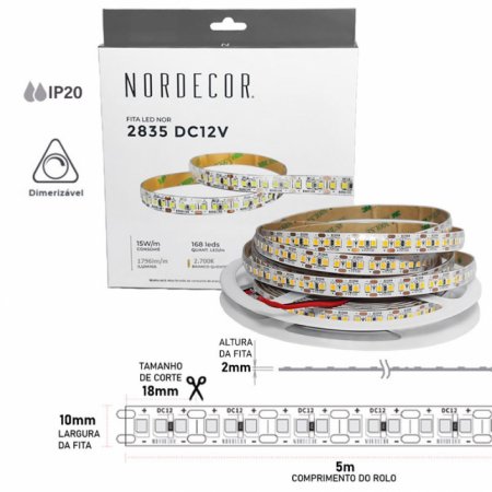Fita LED dimerizável 5m 12v 15w 2700k IP20 -Nordecor