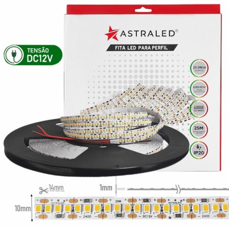Fita LED 25m 12v IP20 20,5w 4000k 240led/m 10mm-Astraled