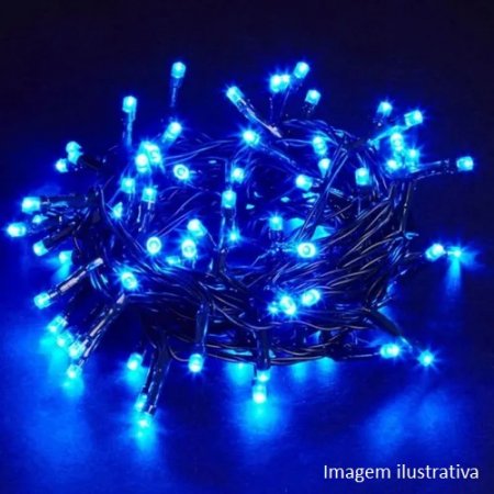 Pisca fixo seq 100 leds azul 220v fio verde 10m-Imp (c/6)