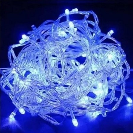 Pisca fixo 50 leds azul 220v fio transparente 5m m/f-Imp