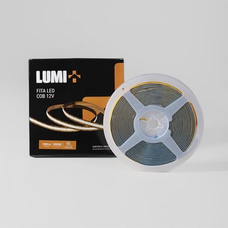 Fita perfil cob 5m 12v IP20 18w 3000k 1800l/m 9mm-Lumi+
