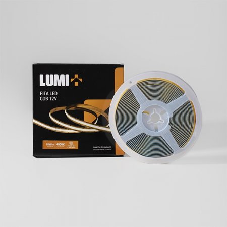 Fita perfil cob 5m 12v IP20 18w 4000k 1800l/m 9mm-Lumi+