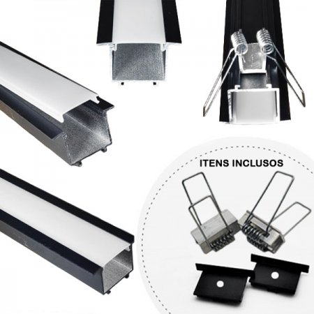 Perfil embutir c/garra 2m x 50x35mm preto/branco-Lumimais