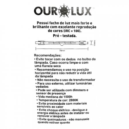 Lâmpada halógena 150w 220v 78mm-Ourolux