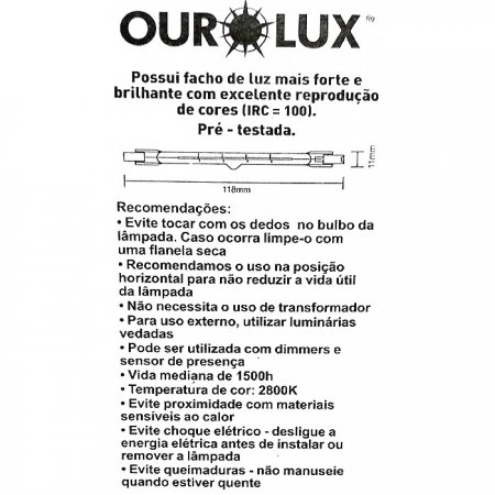 Lâmpada halógena 300w 220v 118mm-Ourolux