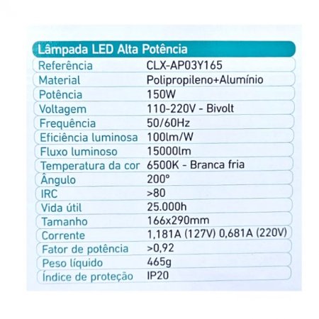 Lâmpada led bulbo 150w 6500k 15000lm E27-Cristallux
