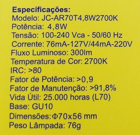 Lâmpada led AR70 GU10 dimerizável 4,8w 2700k 300lm-Jng