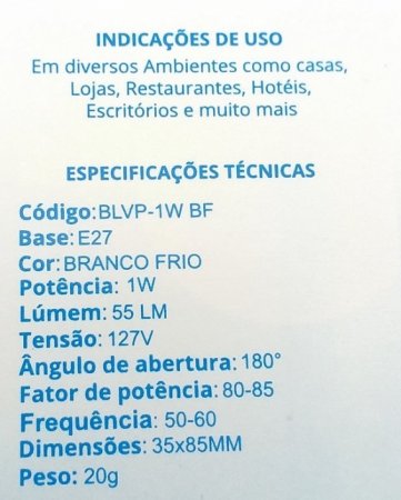 Lâmpada led bolinha 1w bf 127v-Ctb