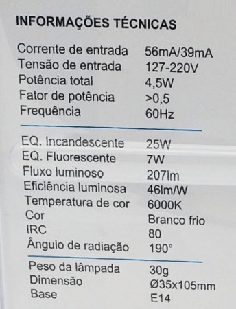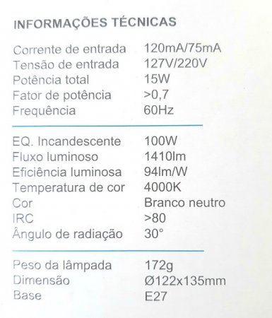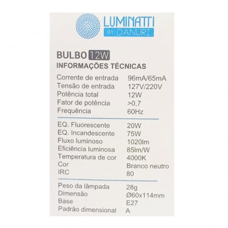 Lâmpada led bulbo 12w 4000k 1020lm-Luminatti