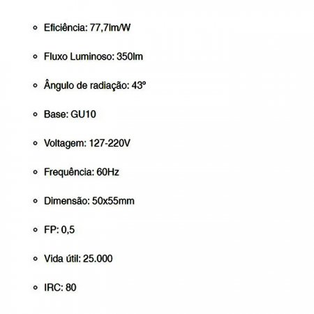 Lâmpada led MR16 4,5w 4000k 350lm 43º-Luminatti