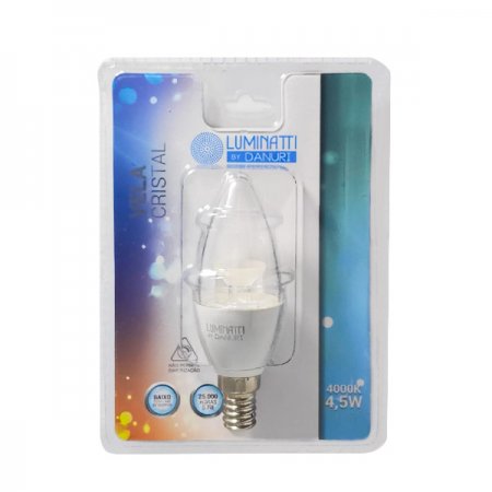 Lâmpada led vela clara 4,5w 4000k 225lm biv E14-Luminatti