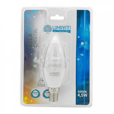 Lâmpada led vela clara 4,5w 6000k 225lm biv E14-Luminatti