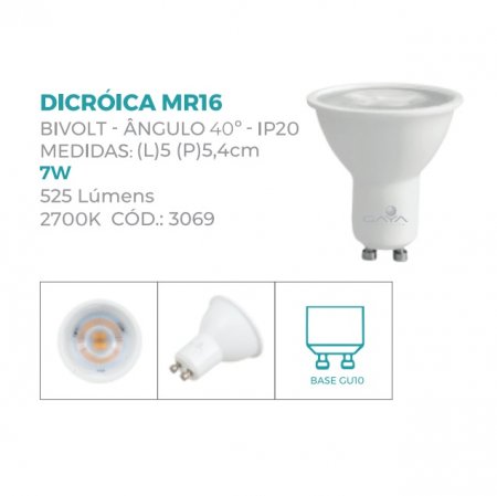 Lâmpada led MR16 7w 2700k 525lm 40º-Gaya