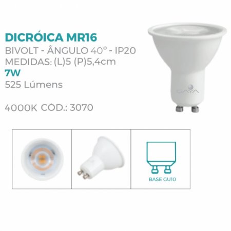 Lâmpada led MR16 7w 4000k 525lm 40º-Gaya