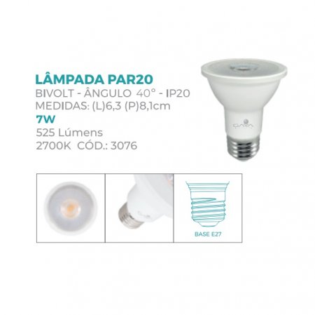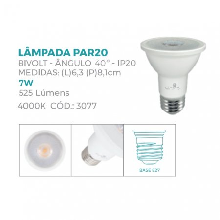 Lâmpada led PAR20 7w 4000k 525lm 36º ip65-Gaya
