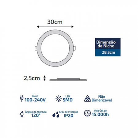 Plafon led embutir redondo 24w 6500k 1680lm 30cm-Mbled