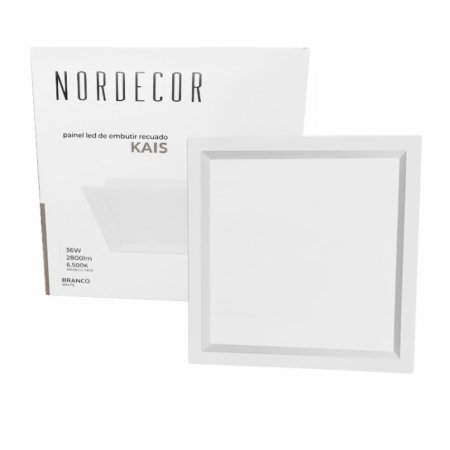 Plafon led embutir quadrado recuado kais 36w 6500k 2800lm branco abs-Nordecor