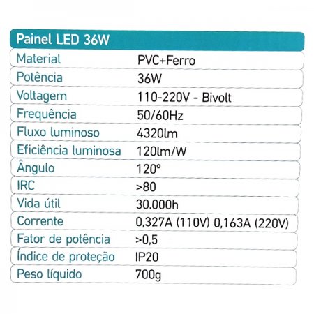 Plafon led embutir quadrado 36w 6500k 3600lm 40cm-Cristallux