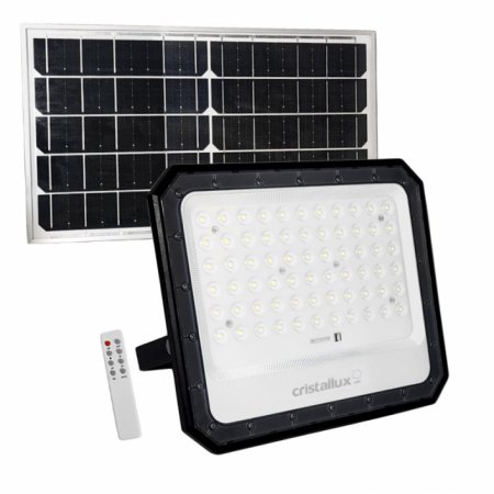 Refletor led com placa solar 100w 6500k 1400lm ip65-Cristallux