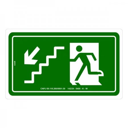 Placa de sinalização fotoluminescente - Escada desce esquerda - Look