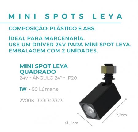 Spot sobrepor mini leya 24v 1w 2700k 90lm 24º IP20 quadrado preto-Gaya (c/02)