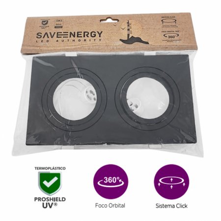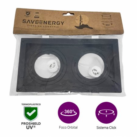 Spot embutir duplo recuado clic mv p/AR70 preto ABS-Saveenergy