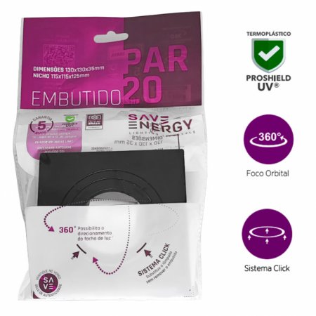 Spot embutir duplo recuado clic mv p/PAR20 preto ABS-Saveenergy