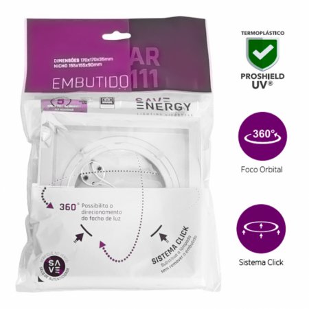 Spot embutir quadrado recuado clic mv p/AR70 branco ABS-Saveenergy
