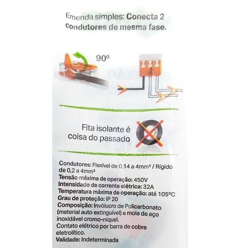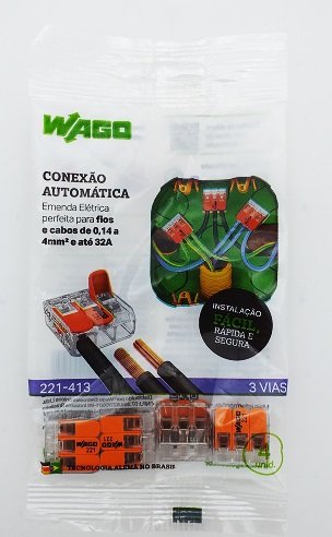 Conector Compacto Emenda 3 polos 4mm-Wago Kit com 4 Unidades