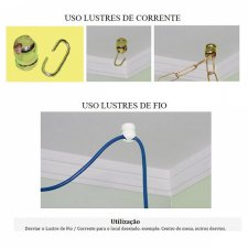 - Utilização: - Desviar Lustre de Fio / Corrente para o local desejado. exemplo: Centro de mesa, outros desvios - Itens incluso: 1 Desviador, 1 Parafuso com bucha