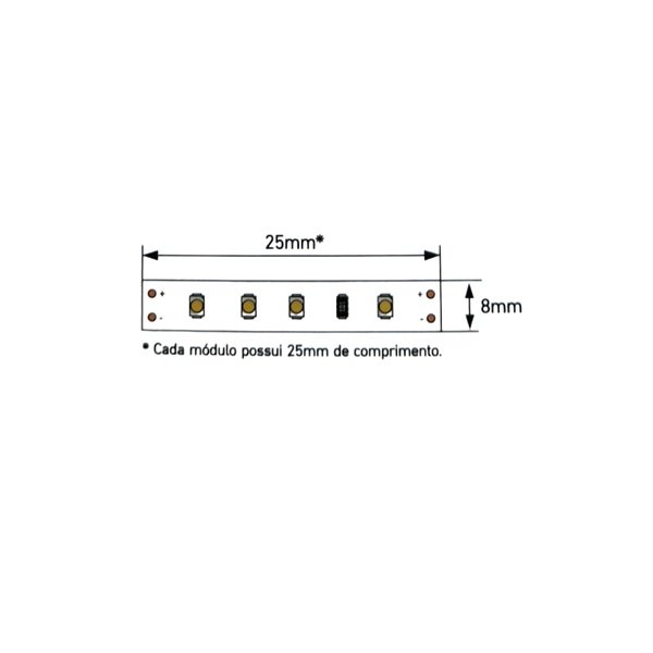 Potência: 20W por metro, resultando em uma potência total de 100W no rolo de 5 metros.