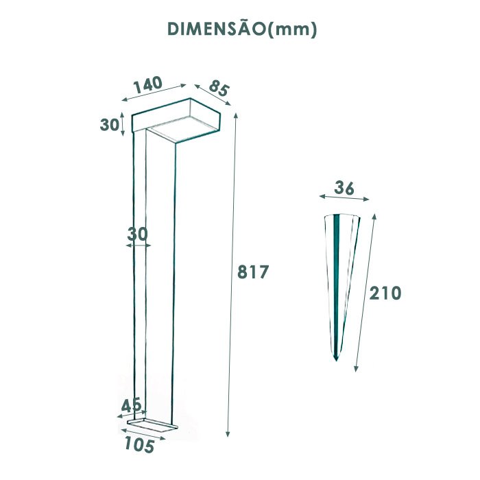 Dimensão: 817 X 85 X 140mm