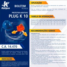 O protetor auricular Kalipso K10 é um equipamento de proteção individual (EPI) destinado à proteção do sistema auditivo do usuário contra níveis de pressão sonora provenientes ou provocados por ambientes ruidosos, superiores aos requisitos na NR 15, anexos I e II.