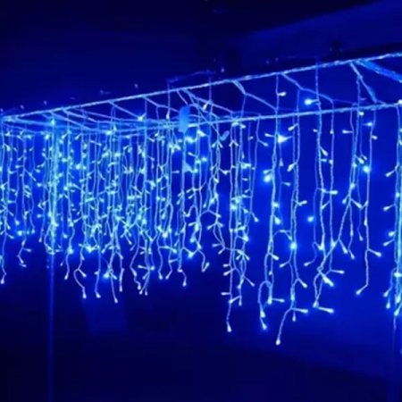 Cascatas 8w 200 leds azul 8f 220v fio branco 5m-Imp